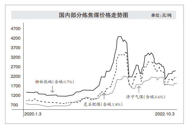 9月国内炼焦煤价格走势先弱后强。9月上旬国内炼焦煤价格整体偏弱,进入9月中旬后再度企稳回升。数据显示,9月初,山西安泽地区主焦煤(含硫0.7%)价格为每吨2550元左右,9月上旬一度回落至每吨2450元左右,9月中下旬再度反弹,9月底价格回升至每吨2600元左右。9月进口炼焦煤价格走势也是先弱后强。9月初,甘其毛都口岸进口蒙古国5号焦煤原煤价格每吨1500元左右,9月上旬一度回落至每吨1450元,临近月底再度反弹至每吨1650元左右。
